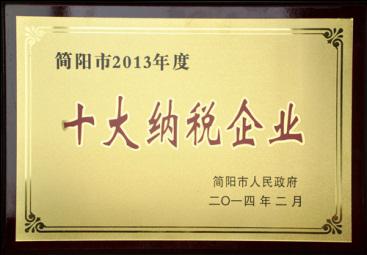 公司獲評(píng)簡陽市2013年度十大納稅企業(yè)