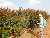 1、荔枝控梢前期:國光多效唑稀釋400—500倍+國光甲稀釋500-600倍,控梢持續(xù)時間長效果穩(wěn)定。