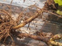 發(fā)生規(guī)律:病原線蟲在土壤中的病根、病果殼蟲瘤內(nèi)外越冬。主要靠病田土壤傳播,也可通過農(nóng)事操作,水流傳播,調(diào)運(yùn)帶病莢果可引起遠(yuǎn)距離傳播。干旱年份易發(fā)病,雨季早、雨水大,植株恢復(fù)快發(fā)病輕。砂壤土或沙土,瘠薄土壤發(fā)病重。