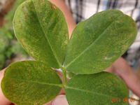 癥狀:花生出苗后即見發(fā)病。初在頂端嫩葉上現(xiàn)褪綠黃斑,葉片卷曲,后發(fā)展為黃綠相間的黃花葉、網(wǎng)狀明脈和綠色條紋等癥狀。病害發(fā)生后期癥狀有減輕趨勢(shì)。