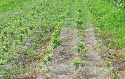 下圖為壹變靜在苗圃中防除空心蓮子草等雜草情況