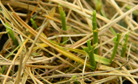 1.年發(fā)生代數(shù) 一年4-5代,在山東和浙江經(jīng)調查都是如此。以蛹在土下3-5厘米處越冬。(以危害白三葉為例:2代開始(7月上旬)在三葉草草坪上開始為害,出現(xiàn)一個個蟲團;3、4代(8-9月)為害加重,為主害代,并出現(xiàn)世代重疊,能成片成片吃光草坪,使綠化景觀效果遭受到嚴重的破壞。)